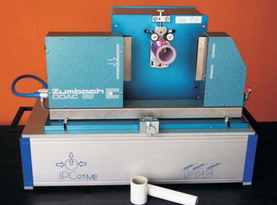 IPC-95 errechnet aus dem Außendurchmesser die notwendige Drehgeschwindigkeit und dreht den Prüfling permanent um 360 °.